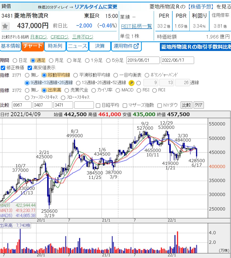 J-REIT全体的に下げ基調だから、持ちこたえてほしいなぁ。